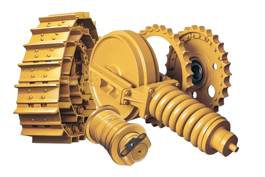 - Undercarriage: chains, rollers, idlers, sprockets, and shoes